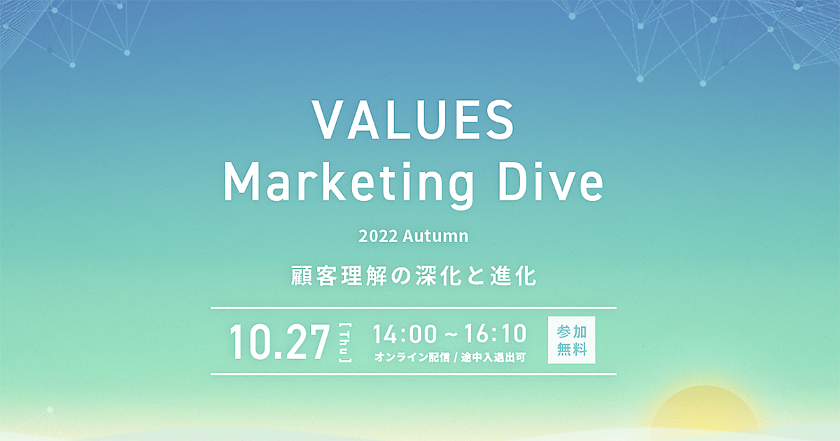 ヴァリューズは、データを通じて顧客のことを深く考える、マーケティングの面白さに熱中するイベント「VALUES Marketing Dive 2022 Autumn」を、10月27日(木)にオンラインで開催する。