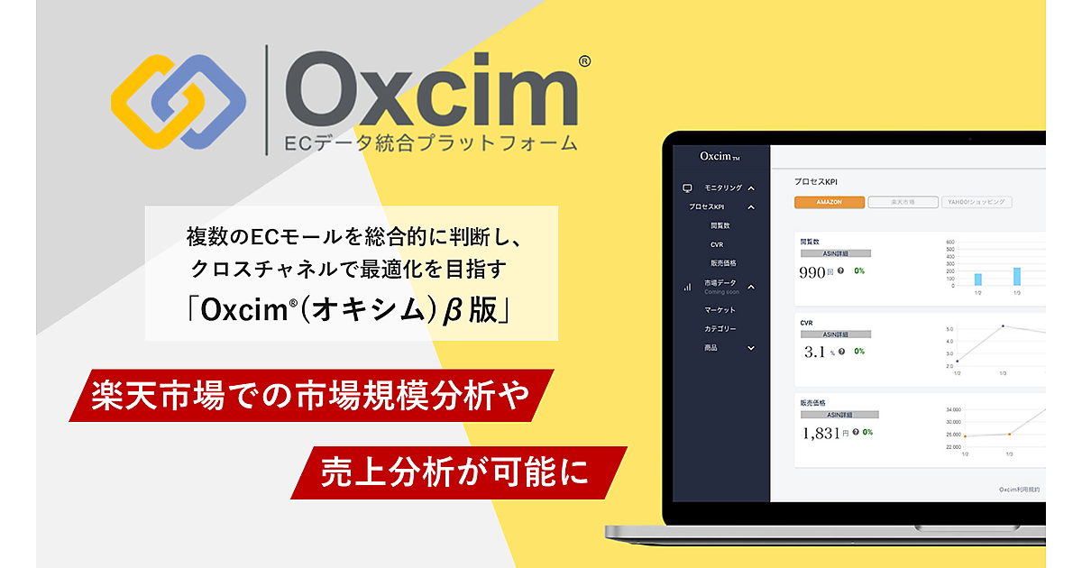 デジタルマーケティング事業のオプトは、複数のECモールを総合的に判断してクロスチャネルで最適化を目指すクラウドサービスのSaaS「Oxcim(オキシム)β版」で、「楽天市場」のECデータ分析ができるようチャネルを拡大した、と9月20日に発表した。計測が難しかった楽天市場での競合分析や、自然検索と広告の掲載順位の計測が可能になる。