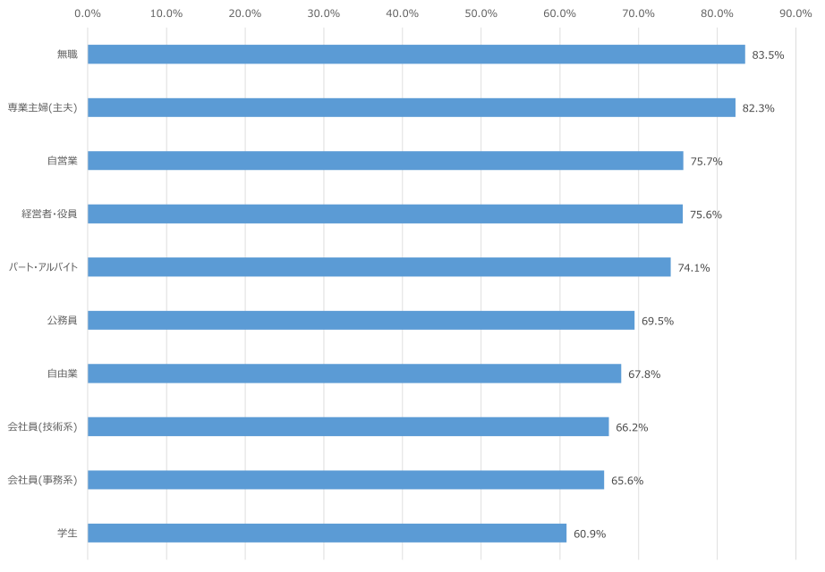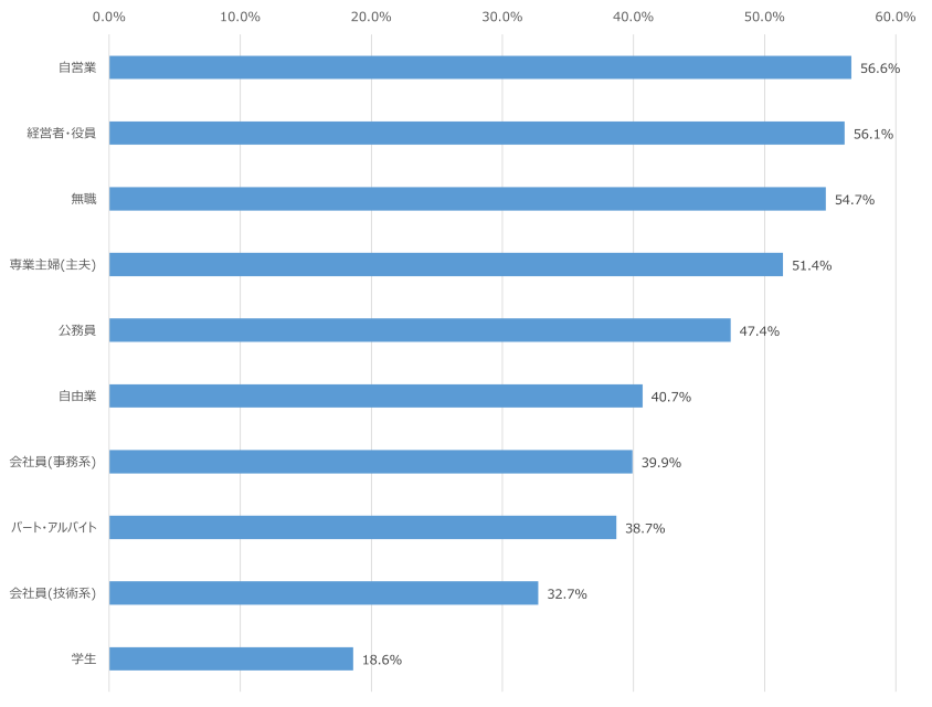 一方で、「新聞」を読んでいるのは自営業、経営者・役員、無職、専業主婦(主夫)が半数を超える結果となった。