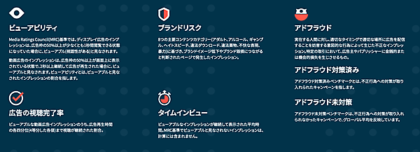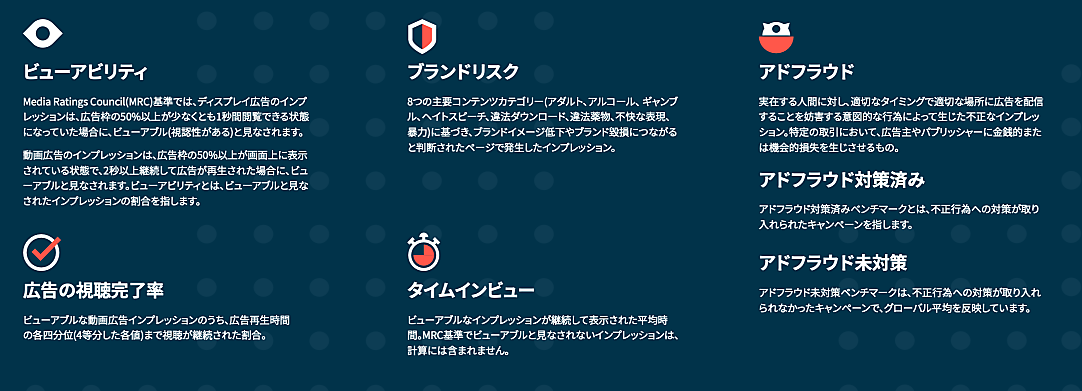 - 【調査指標】ビューアビリティ、ブランドリスク、アドフラウド、タイムインビューなど