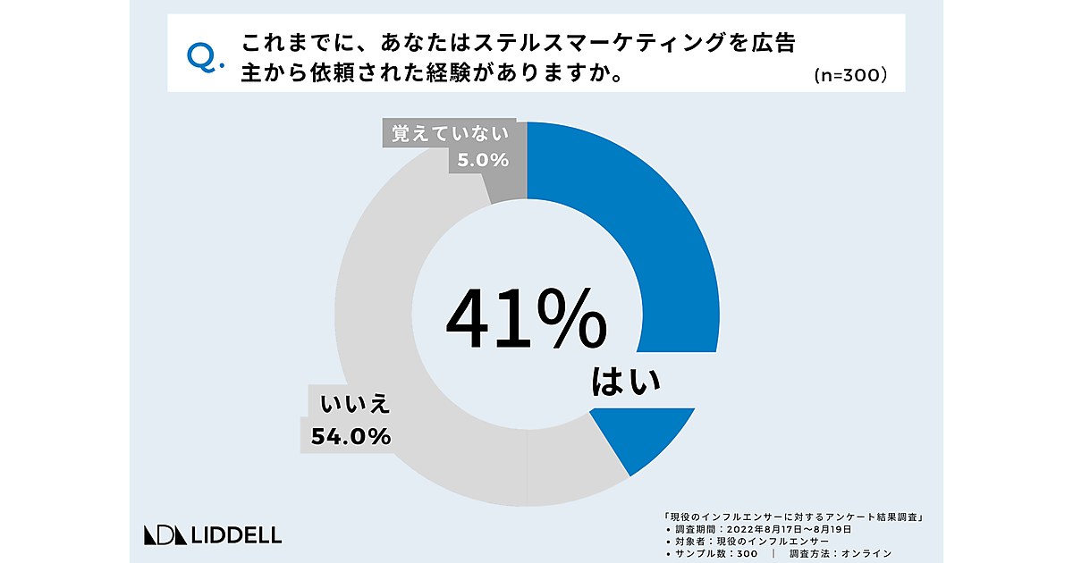 LIDDELL(リデル)は、「ステルスマーケティング」に関する調査結果を発表した。同社のLIDDELL INFLUENCER WORKSPACE(LIW)に登録している現役インフルエンサー300人から回答を得ている。