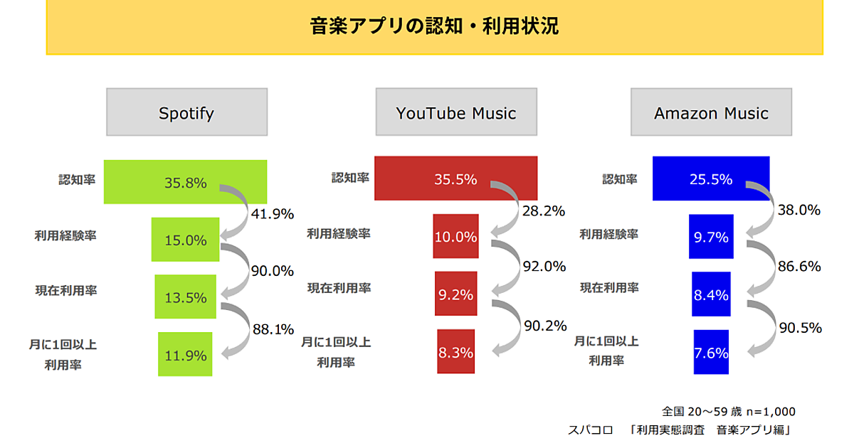 音楽アプリの認知率・利用率、1位は「Spotify」