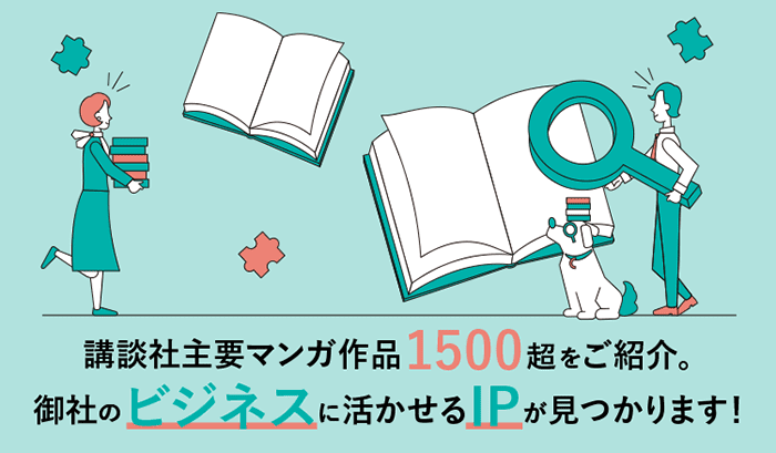 マンガIPサーチは、ビジネスに活用できる講談社のマンガ作品情報を掲載しているBtoB(企業間取引)サイト。作品ごとに登場キャラクターの詳細を確認できるほか、企業とのコラボ事例集や映像化作品、売上ランキングなどマーケティングに役立つ情報も掲載している。掲載タイトル数は1500超と業界でも類を見ないIPデータベースとなっている。