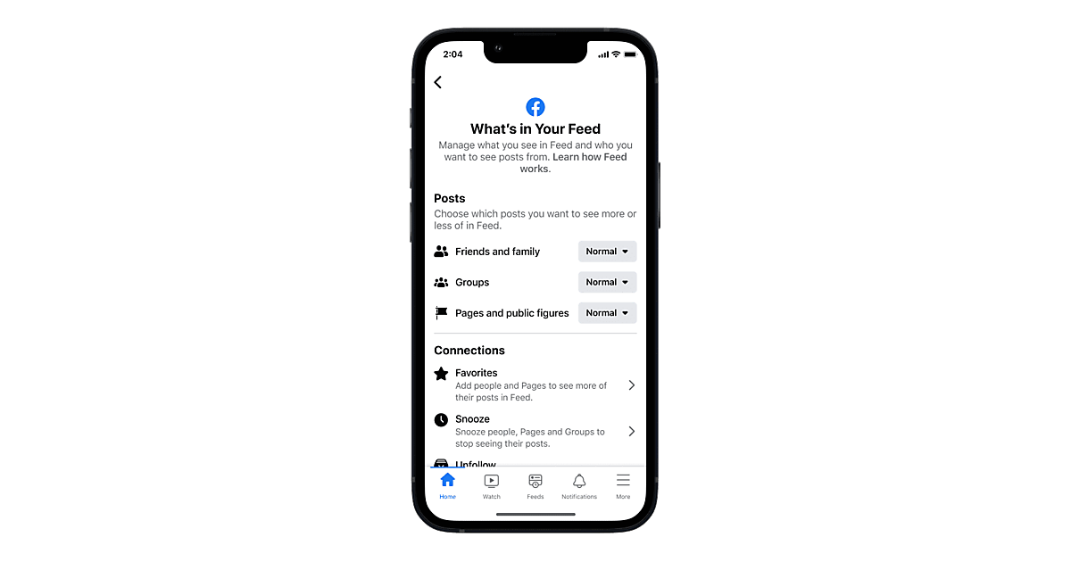 新機能のオプションはフィード投稿に定期的に表示される予定。近日中に投稿の右上隅のドットが3つ並んだ「…」メニューをタップして、「表示を増やす」か「表示を減らす」を選択できるようになる。友達や家族、グループ、ページ、つながりのある著名人に関連するコンテンツの表示量を利用者自身が管理できる方法も引き続き検討している。