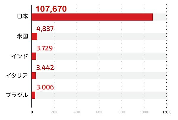 全世界の国別に見ても日本は飛び抜けて多く、2022年1~6月はアメリカの20倍以上のEmotet感染を記録している。ただし、Emotetは2022年8月以降ほぼ動向が途絶えて、あらためて沈静化しており、現在は休止期に入っていると推測される。