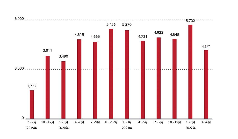 データを人質にして身代金を要求する「ランサムウェア」は2022年も活発で、2022年第1四半期(2022年1月~3月)だけで、5700件超が検出されており、2019年以降最多となった。