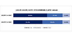 また、直近1年での売上推移について聞くと、効果を感じている人の46.2%が「新規顧客による売り上げが増加傾向」と答えたのに対し、感じていない/どちらとも言えない人では15.9%にとどまった。既存顧客についても同じような結果となり、大きな差が見られた。