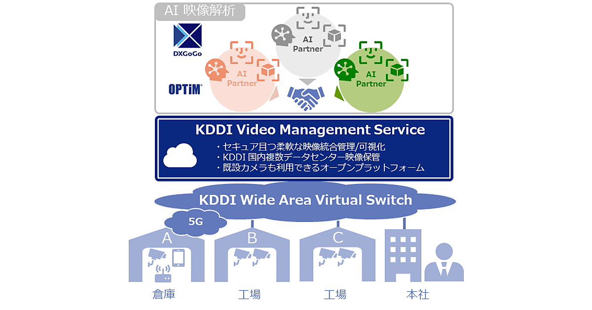 KDDIは、監視カメラの映像データを高セキュリティなクラウド上で管理・可視化する映像統合管理サービス「KDDI Video Management Service」の提供を11月28日に始める、と10月24日に発表した。場所やデバイスを問わず秘匿性の高い映像の閲覧が可能。AI(人工知能)映像解析と組み合わせてエリア内の滞留・侵入検知の「防犯・防災対策」や、製造品や設備を外観検査する「検品業務や設備点検の効率化・自動化」ができる。