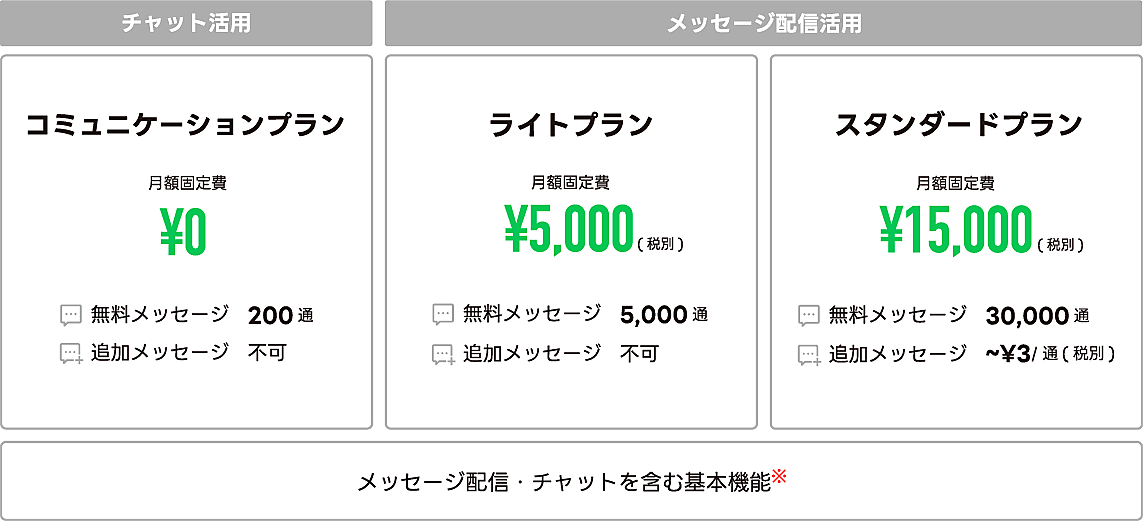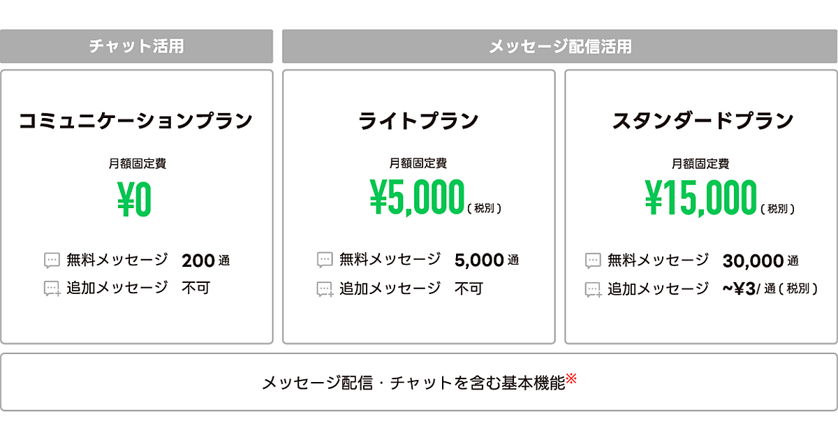 LINE公式アカウントは、企業・店舗が「友だち」のユーザーにメッセージが配信できるサービス。今回、企業・店舗がユーザーと双方向の深いつながりを生み出せるサービスを目指して料金プランを改める、としている。サービス利用情報やアンケート結果などユーザーデータとのひも付けによるメッセージ配信の高度な最適化を推進する。
