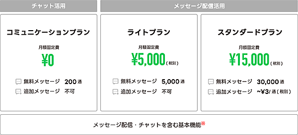 「Yahoo! JAPAN」やコード払い「PayPay」などZHDグループ各社のサービスとの連携を通したユーザー接点の強化▽業種特化型パッケージプランの提供--にも取り組む。現行の「ライトプラン」(月額固定費5000円)、「スタンダードプラン」(同1万5000円)=いずれも税別=は、名称と月額固定費はそのまま。ライトは無料配信メッセージ数が月1万5000通から5000通に、スタンダードは同4万5000通が3万通になる。