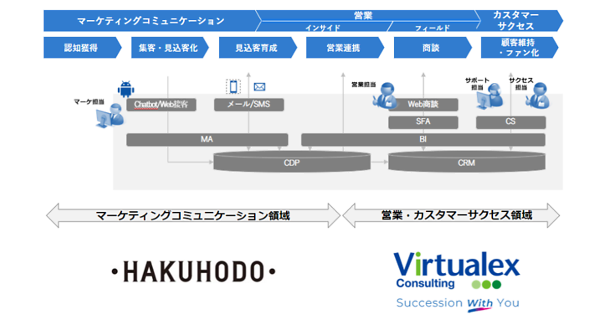 博報堂は、企業のマーケティング・営業・カスタマーサクセス(顧客の成功体験への活動)領域のDX(デジタル変革)の取り組みを支援するサービス「HAKUHODO Marsys Assessment for RevOps(博報堂マーシス・アセスメント・フォー・レブオプス)」を始める、と11月7日発表した。各領域を結んだ業務プロセスの最適化と情報システム基盤の企画・構築をサポートする。