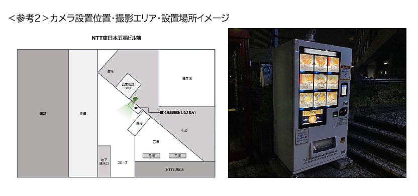 冷凍自販機は、仙台市若林区のNTT東日本五橋ビル前に設置する。NTT東日本は、データ解析・取りまとめと、映像AIサービスの提供・管理運営などを手掛ける。AIカメラでは、画像内で人物が検出された数▽画像内で人物が検出された日時▽推定される性別・年齢▽人物が検出されたカメラの設置場所--の情報を取得する。映像は性別・年代情報を取得した後、即時に破棄する。