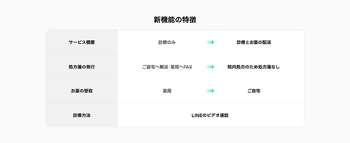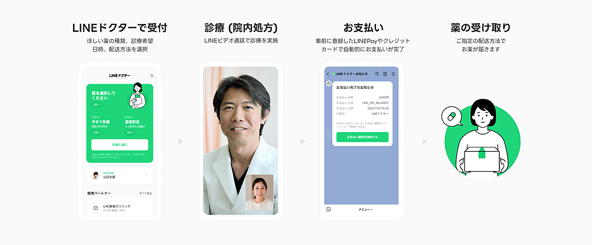 LINEドクターの利用ユーザーから、「時間の有効利用ができて便利」、「診療後から会計までの待ち時間がなくて楽」などの意見を寄せられる一方で、「薬の配送が可能な薬局との連携をしてほしい」、「薬局の検索機能をつけてほしい」などの薬の配送に対する要望が出ていた。このためLINEドクターでより幅広い局面でのオンライン診療を活用できるよう、新たに全国エリアを対象に処方薬の配送サービスも提供を始める。
