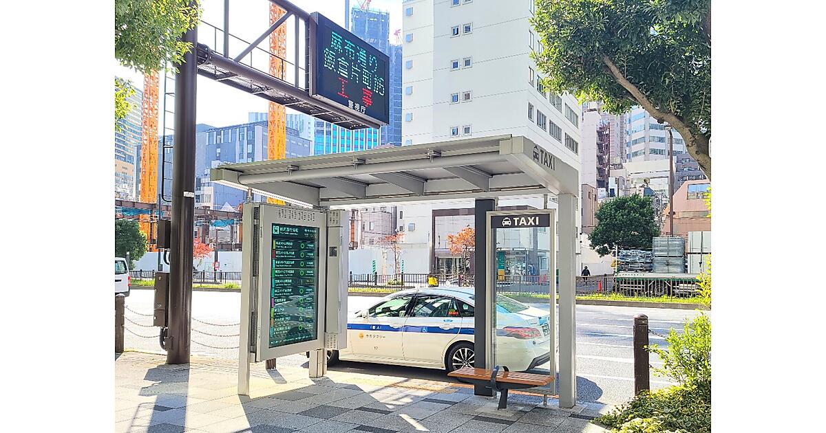 東京タクシーセンターは、タクシー事業の公益性を高める試みで広告付タクシーシェルターを19カ所に設置(22年12月1日現在)。このうち、山王パークタワー前(11月1日~)、コレド日本橋前(12月1日~)、 青山OMスクエア前(調整中)の3カ所でポスター貼付用の広告スペースをデジタルサイネージに交換。災害や鉄道運行状況など公共情報の発信機能を持たせ、周辺通行に対する安全上・都市景観上の支障が出ないかを6カ月間検証する。