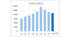 苦情申立者の年代・性別内訳をみると、今期はコロナ禍で増加していた10代~40代の苦情が大きく減少していた。男女別でみると、徐々に女性の割合が増加しており、10年前には男女比7:3だったのが、6:4に近づいていることがわかった。