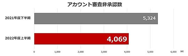 2022年度上半期の非承認件数は2021年度上半期より増えたが、直前の2021年度下半期の7575万4917件からは減った。広告審査では広告単位の対応に加え、違反表現を繰り返したり、大量の非承認広告を入稿したりする広告アカウント自体を停止している。2022年度上半期は4069件のアカウントを非承認にした。これも2021年度下半期の5324件と比較して減少した。