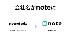 株式上場に合わせてnoteは同日、ロゴデザイン、モーショングラフィックス、サウンドロゴをリニューアルし、オリジナルフォントを作成した。ロゴはnoteの「t」が「+」になった。あらゆる人がオンラインの活動拠点に使うプラットフォームとして進化することを宣言したという。