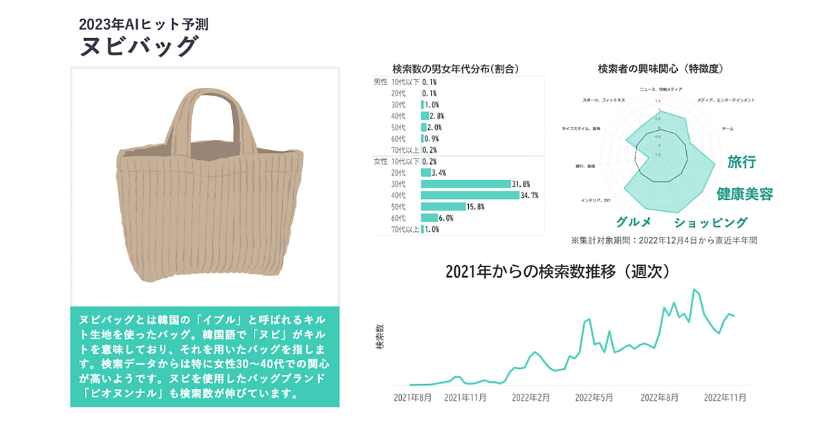 ヤフーデータソリューションは、「商品トレンドマップ」の仕組みを用いて、2023年にヒットするかもしれない10個の商品を発表した。
