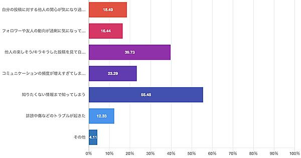 「誹謗中傷」「自分の投稿への反応」などより“知りたくないことを知ってしまう”というのが、SNS最大のストレスのようだ。ケースとしては、悲惨なニュース、アイドルや知人のスキャンダル、コンテンツのネタバレなどさまざまだが、情報過多時代にふさわしい1位といえそうだ。