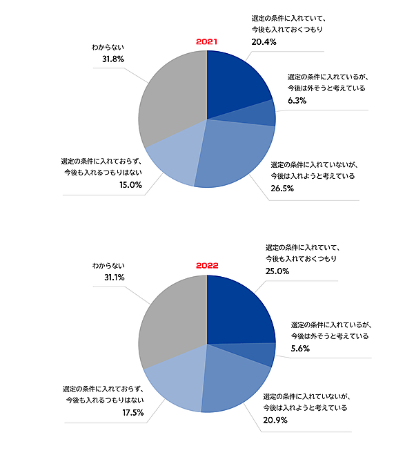また「アドベリフィケーションを、代理店や広告配信プラットフォームの選定条件に入れているか」を聞くと、「選定の条件に入れていて、今後も入れておくつもり」20.4%→25.0%が前年より増加した。企業規模別では大企業ほどその傾向が強い。