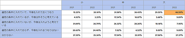 - 【事業規模の区分】小:年商50億円未満、中:年商50億円以上~200億円未満、大:年商200億円以上