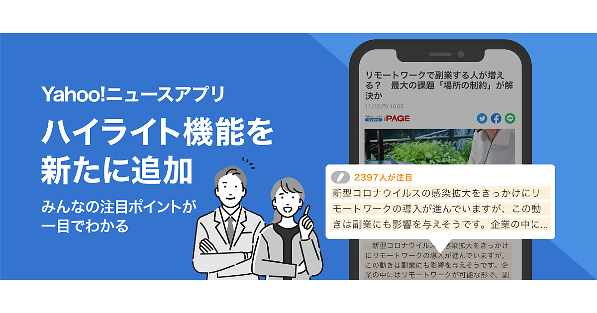 ヤフーは、「Yahoo!ニュースアプリ」にハイライト機能を新たに追加したことを1月23日に明らかにした。「Yahoo!ニュース」に配信された記事の本文中にユーザーが注目したポイントにマーカーで線を引くように印をつけることができる機能で、最新版のアプリにアップデートすると機能を利用できる(iOS版のみ)。機能の利用と閲覧で「Yahoo! JAPAN ID」へのログインは不要。