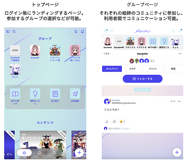 絵師コレクションは、あるテーマで完全新作イラストを描きおろす共創コミュニティで、1月23日18時から3月31日まで。人気イラストレーター(絵師)とファン、ファン同士の価値共創を通じて、応援・貢献に応じて活動実績を表彰する「実績証明NFT(ロイヤルメンバーシップNFT)」を配布する。クローズドチャンネルへの参加やコミュニティで制作して出品したイラストのオークション報酬の使用方法への投票などを予定している。