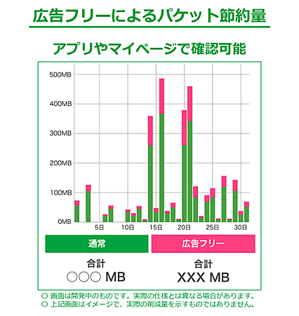 スマートフォンでウェブサイトを閲覧する際に表示されるデジタル広告で動画が増え、同社の調べでは通信量の約4割が広告で消費されることもあるという。ユーザーが意図しない広告で消費される通信量を本来見たいコンテンツに充てられるように、広告フリープランを提供する。迷惑情報フィルタリングサービスを手掛けるトビラシステムズの協力を受けた。