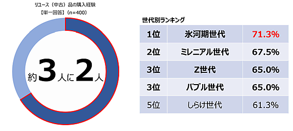 約3人に2人がリユースの購入経験あり