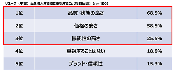 コメ兵(KOMEHYO)は、「消費行動とリユース品への価値観」に関する調査結果を発表した。全国の18歳~69歳の男女400人が回答している。