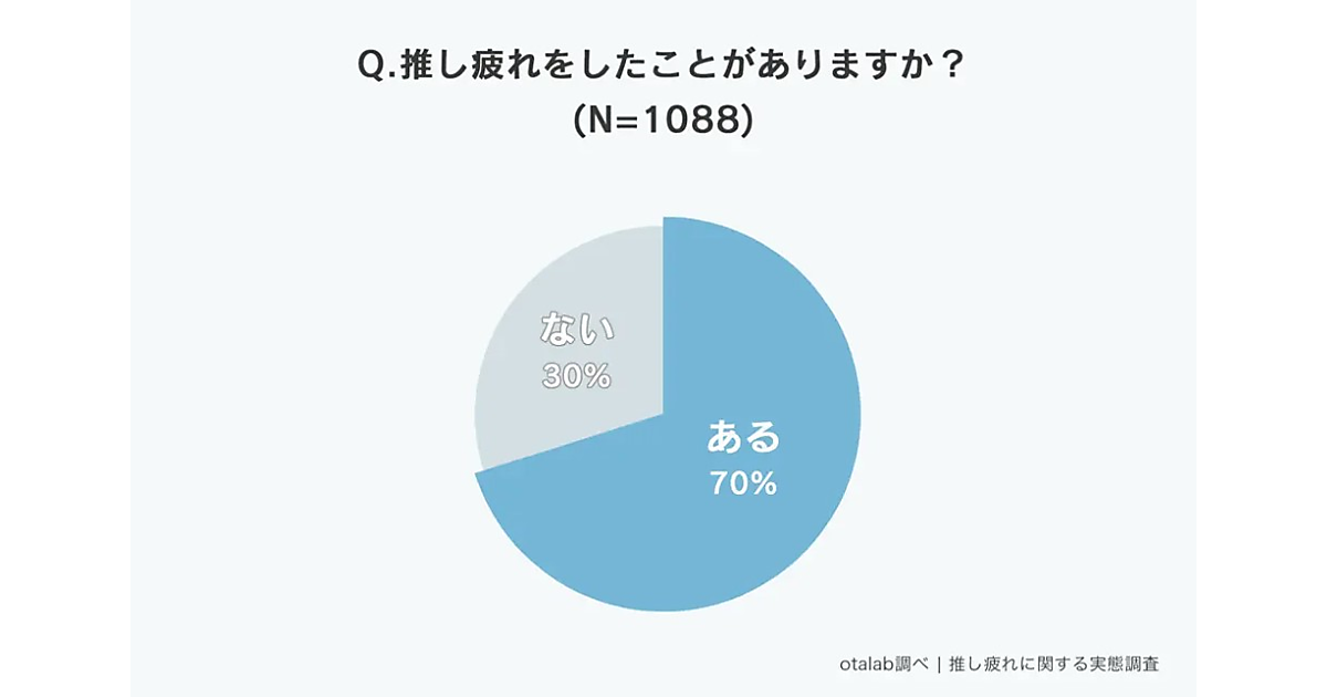 otalabは、「推し疲れについての実態調査」を実施した。10~60代の推し活女子1,088人が回答している。