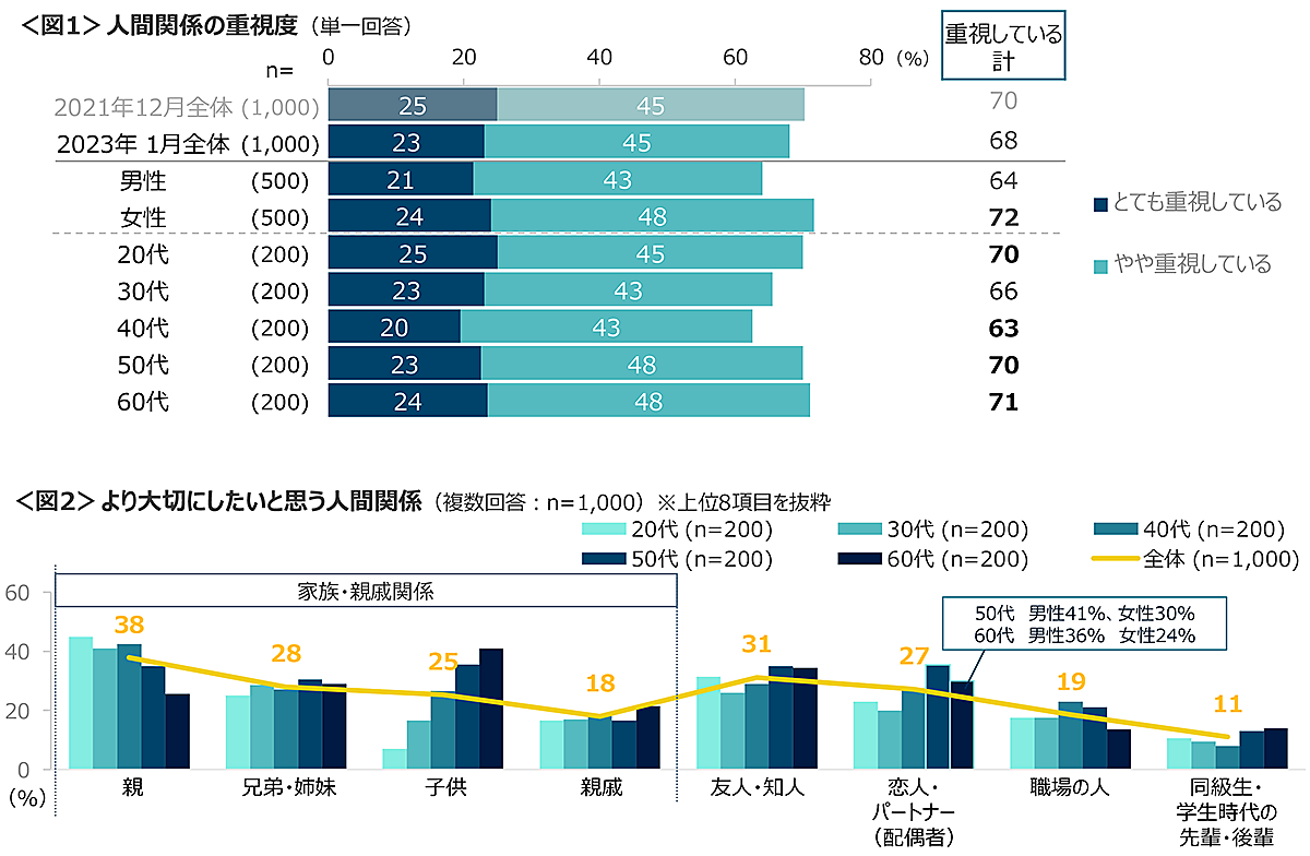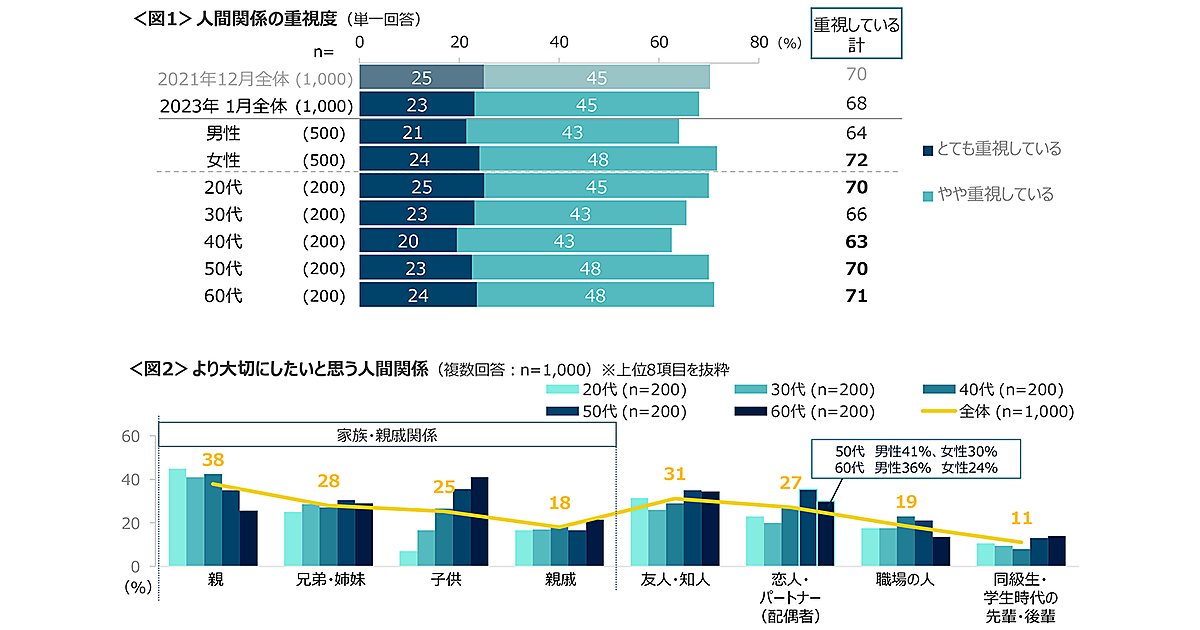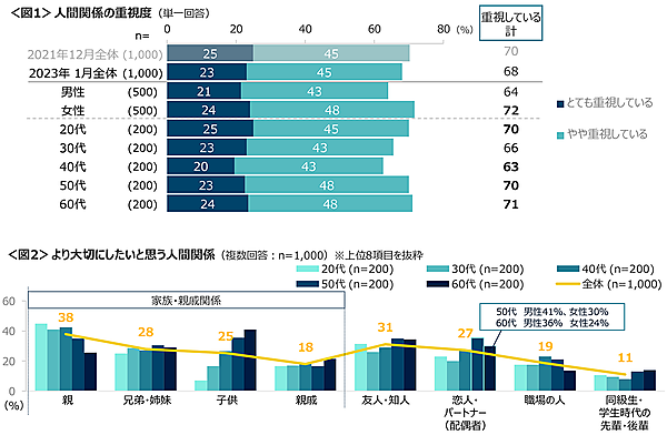 クロス・マーケティングは、「人間関係に関する調査(2023年)」の結果を発表した。人間関係の重視度、より大切にしたい人間関係、その理由、人間関係のリセットの経験/リセット意向などについて、1,000人から回答を得ている。