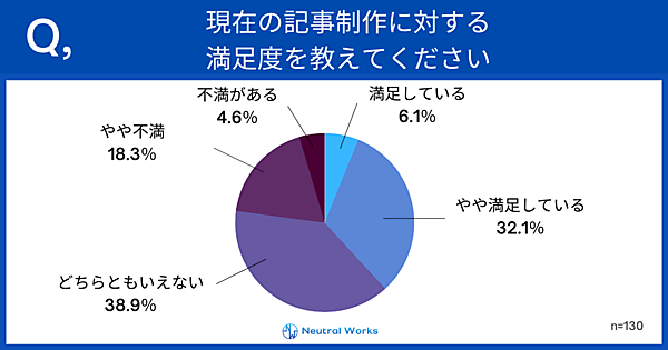 ニュートラルワークスは、「自社コラムやオウンドメディアなどの記事制作」に関する調査結果を発表した。これらを運営している企業に所属するビジネスパーソン130人が回答している。