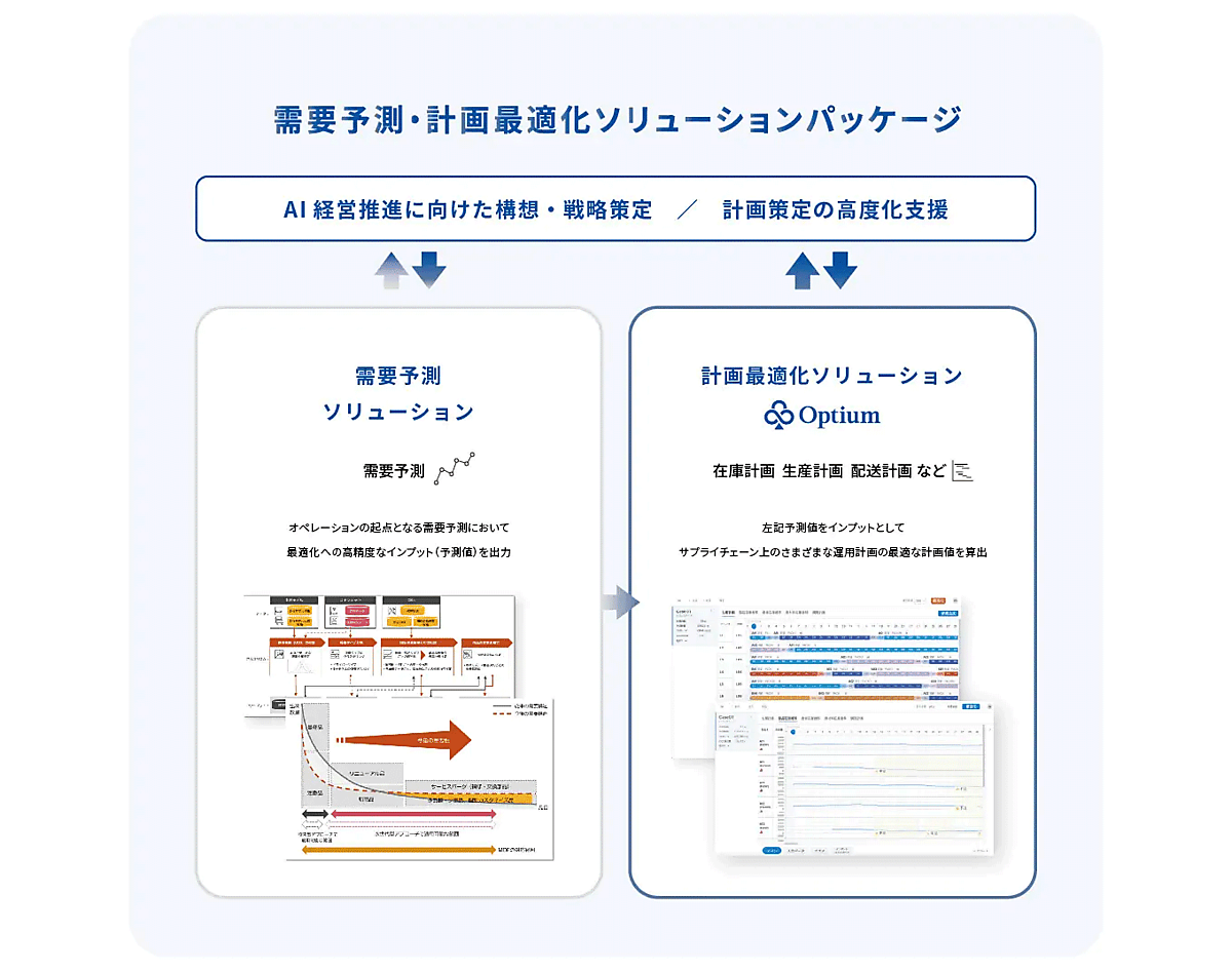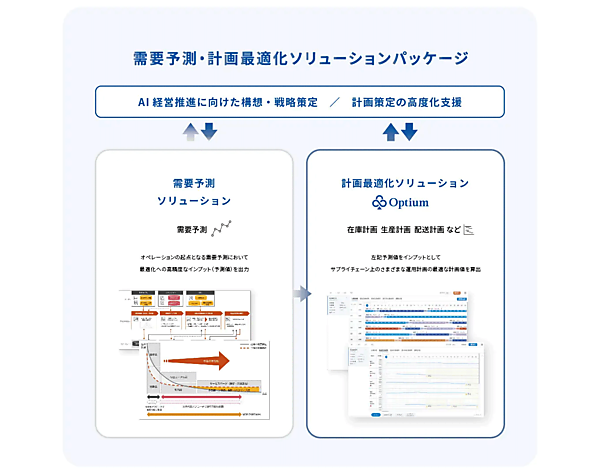 AIを活用した需要予測と計画最適化ソリューションを組み合わせた共同ソリューションとなり、企業の収益最大化・競争力向上に向けた計画業務のDX(デジタル変革)を支援する。製造業、エネルギー、小売り、物流、鉄道・バス事業のサプライチェーン(供給網)上の各種の計画業務が対象。意思決定の高度化・迅速化でサプライチェーンを強靱(きょうじん)にする。
