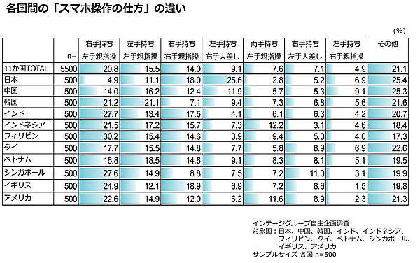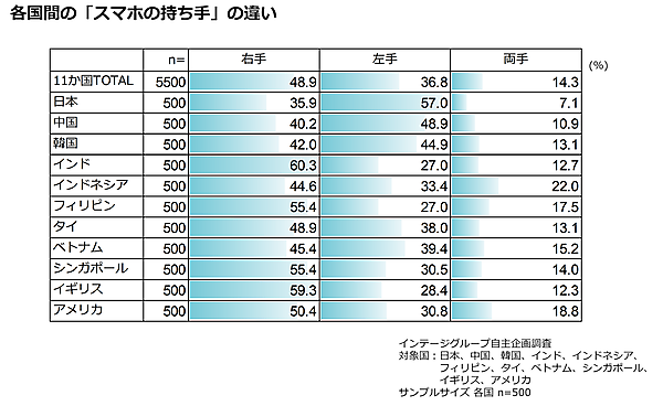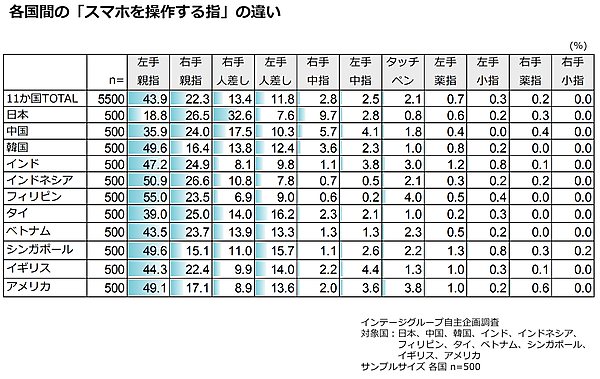 アジア・米英・中国など、「スマホの持ち手」国別傾向が明らかに