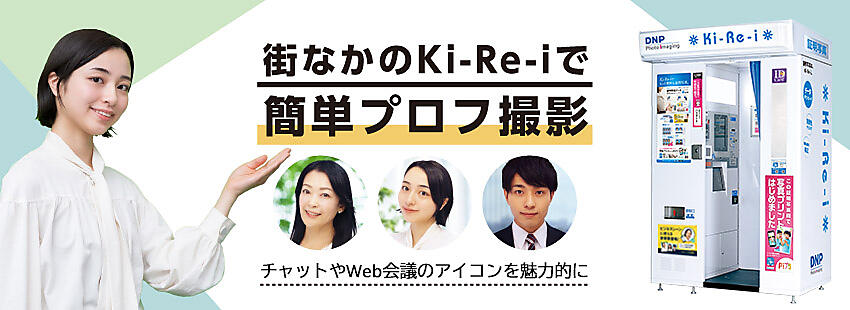 大日本印刷(DNP)と、子会社で写真関連製品販売・証明写真事業のDNPフォトイメージングジャパン(PIJ)は、街中などに設置している証明写真機「Ki-Re-i」で、ウェブ会議、ビジネスチャットやSNS用のプロフィル写真を撮影するサービスを2月28日に始める、と2月16日発表した。ビジネスで使いやすい背景が選べる。東京都内の3カ所で開始し、順次拡大する。