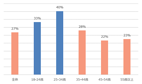 なおこの調査では、おおよその区分として、18~24歳(1999年~2005年生まれ)をZ世代、25~34歳(1989年~1998年生まれ)をミレニアル世代としている。
