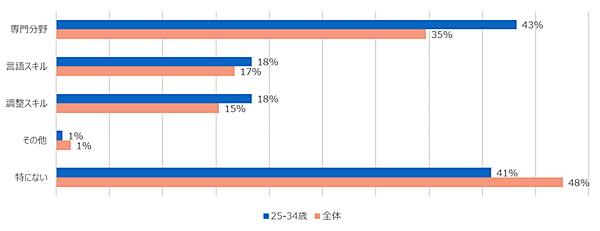 なお「転職やキャリアアップに際して、抱えている課題」に対してミレニアル世代は、「専門分野」という割合が特に多かった。