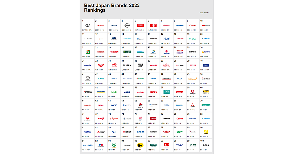 インターブランドジャパンは、日本発のブランドを対象としたブランド価値ランキング「Best Japan Brands 2023」を発表した。独自のブランド価値評価手法である「Brand Valuation」を用いて、ブランドの持つ価値を金額換算しており、今年で15回目の実施となる。
