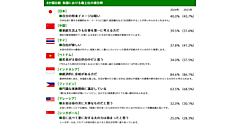 「生活に求めること」を26項目で聞いたところ、中国、タイ、インド、アメリカでは1位が「幸福な生活」となった。ドイツは1位が「自由」、僅差で2位が「幸福」だった。一方で、日本は1位が「安定した生活」、2位が「落ち着いた生活」、3位が「のんびりした生活」と、安定や平穏を望む傾向が見られた。
