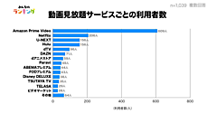 具体的に利用サービスを聞くと、「無料配信サービス」では「TVer」68.0%が圧倒的に多く、「ABEMA」29.1%、「GYAO!」25.4%が上位。「有料配信サービス」では「Amazon Prime Video」40.1%が最多で、「Netflix」20.4%、「Hulu」14.3%が離れて続く。