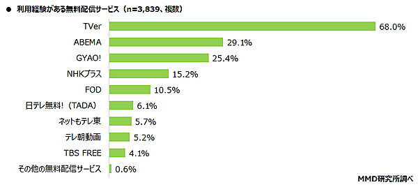 MMDLabo株式会社が運営するMMD研究所は、「テレビ配信サービスに関する調査」に関する調査結果を発表した。18歳~69歳の男女10,100人から回答を得ている。