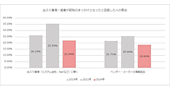 続いて、「訪問型営業とリモート営業のどちらが好ましいか」を売り手と買い手それぞれに聞くと、売り手側はコロナ禍以前から変わらず、「訪問営業の方が好ましい」と考える人が多かった。一方で、買い手側は「どちらでもよい(状況に応じて柔軟に対応してほしい)」が2021年以降増加しており、今回の調査でも前年に引き続き約4割となった。