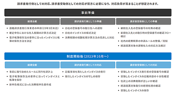 2023年10月開始のインボイス制度では、請求書発行側と受領側それぞれの対応が必要となる。この調査で現状は発行側に比べ、受領側の認知・対応が遅れている状況であることが判明した。
