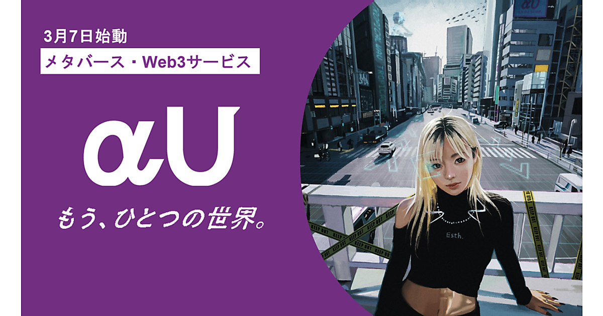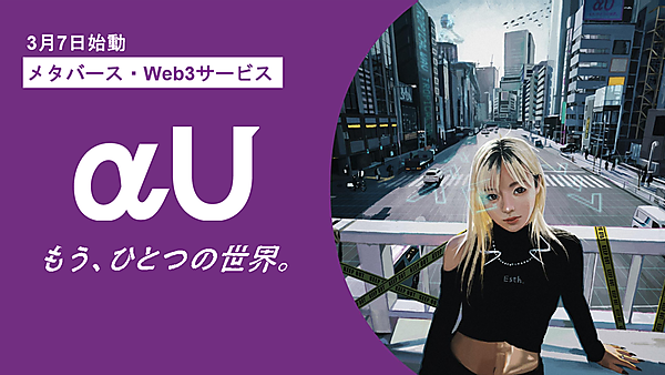 KDDIは、メタバース(仮想空間)・Web3(ウェブスリー)サービス「αU(アルファユー)」を始める、と3月7日に発表した。メタバース、ライブ配信、バーチャルショッピングなどのWeb3時代のサービスを提供し、音楽ライブやアート鑑賞、友人との会話やショッピングなどの日常体験をいつどこにいても楽しむことができる。国内外のパートナーと連携し、日本のクリエイターやコンテンツのグローバル展開を支援する。