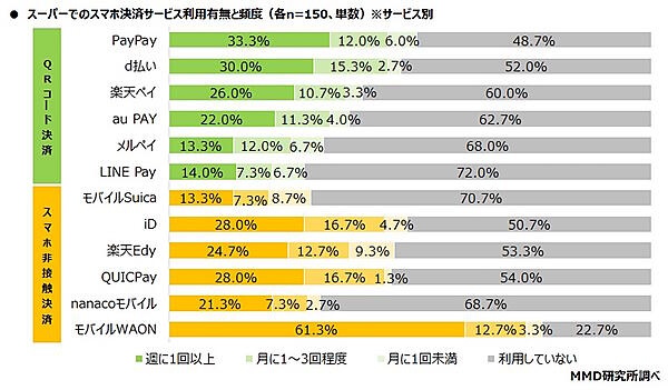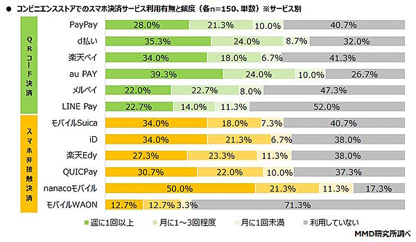 コンビニ「nanacoモバイル」スーパー「モバイルWAON」ドラッグストア「楽天ペイ」がトップに