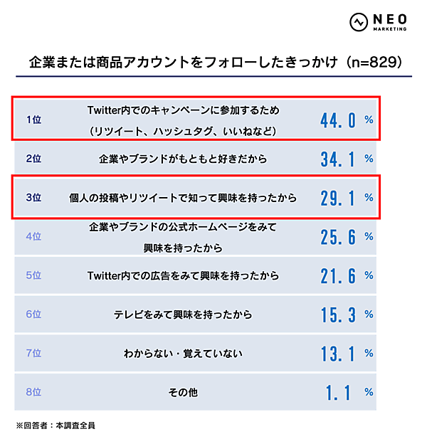 - 【調査対象】全国の20歳~69歳男女、Twitter企業アカウントをフォローしている人