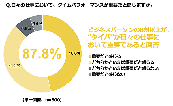 うるるが運営する電話取次サービス「fondesk」は、「ビジネスにおけるタイムパフォーマンス(タイパ)」に関する調査結果を発表した。全国のビジネスパーソン500人が回答している。