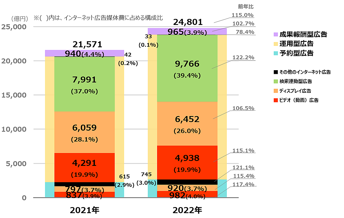 - その他のインターネット広告:上記以外のフォーマットのインターネット広告。メール広告、オーディオ(音声)広告など。
