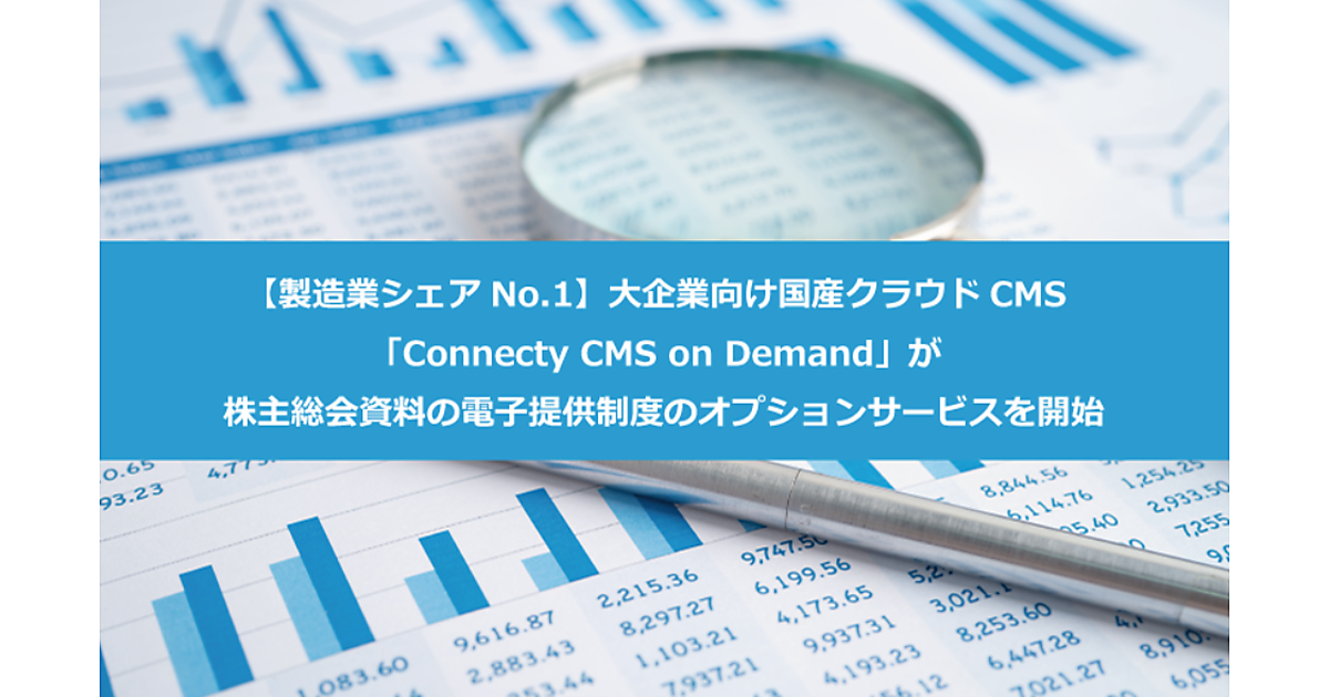 CMS(コンテンツ管理システム)開発・デジタル戦略支援事業のコネクティは、同社の大企業向けクラウドCMS「Connecty CMS on Demand」で、株主総会資料の電子提供制度のオプションサービスを3月に始める、と3月27日発表した。ウェブサイト上の株主総会関連ページに関するモニタリングとレポートを提供する。同制度が開始されたことを受けた。